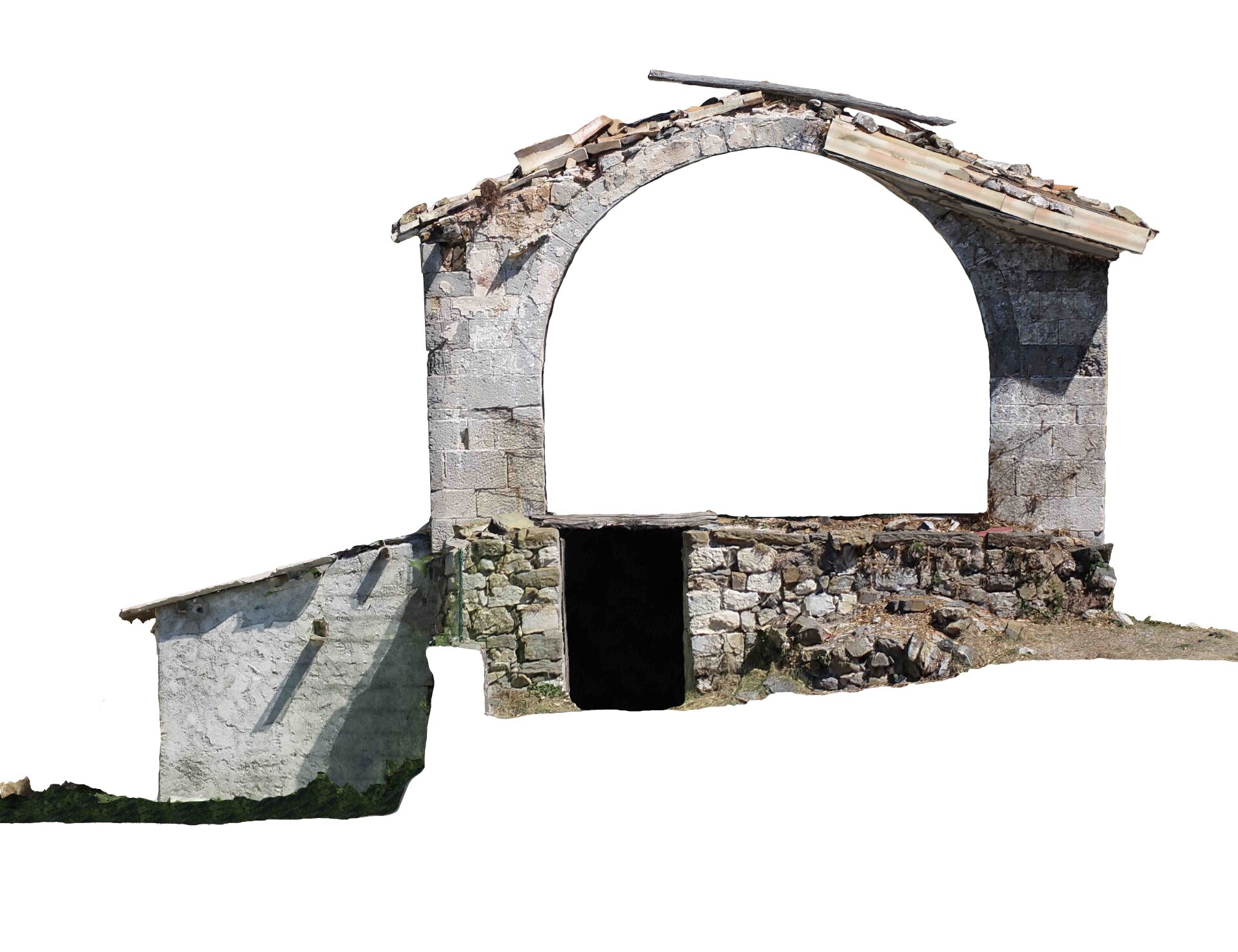 Sa façade a été fermée par un mur de pierres liées à la chaux, percé de deux ouvertures : une pente douce et un emmarchement permettant l’accès au niveau bas, un montadou donnant accès au niveau haut.